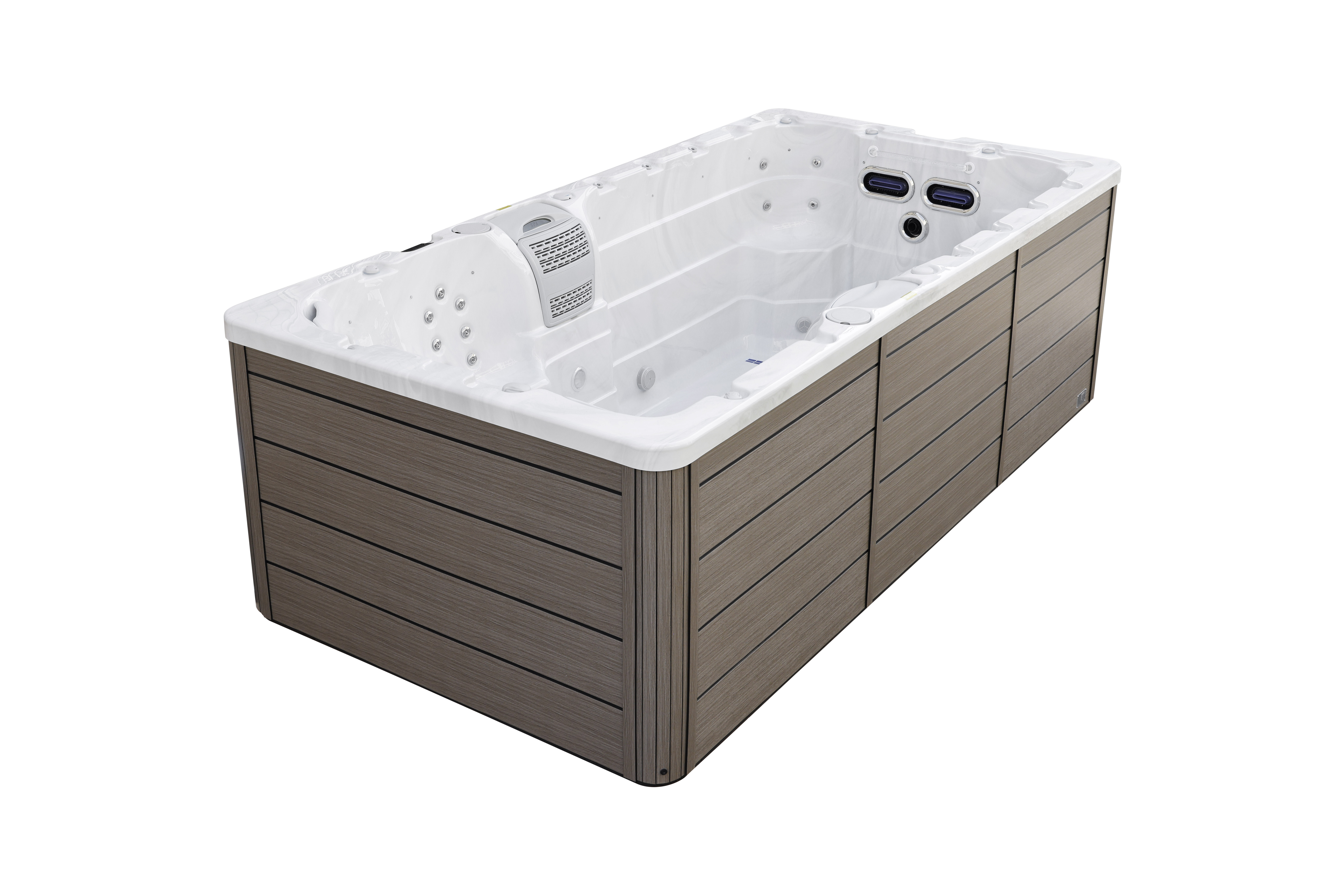 Современная система управления NordicSpa на русском языке с сенсорным LCD-дисплеем и WiFi позволяет без проблем управлять бассейном в удобном формате, включая дистанционное управление со смартфона.